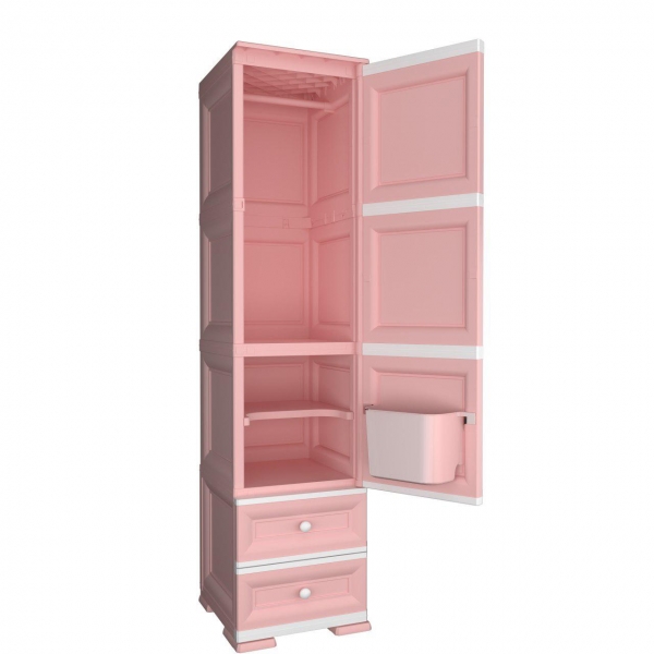 کمد سه طبقه که قسمت بالا دارای رگال لباس بوده و یک طبقه مناسب برای قرار دادن کیف و کفش و سایر لوازم میباشد.